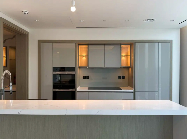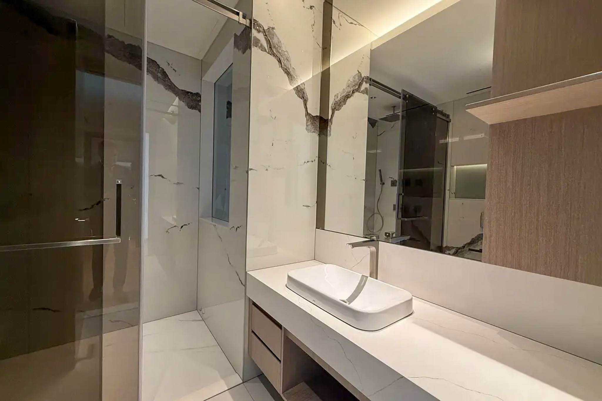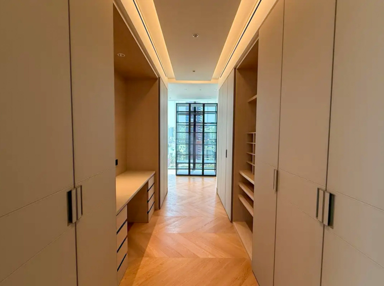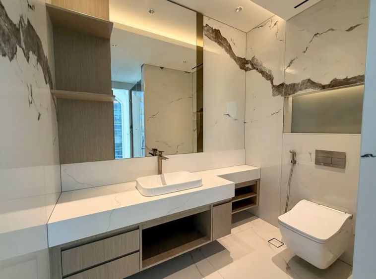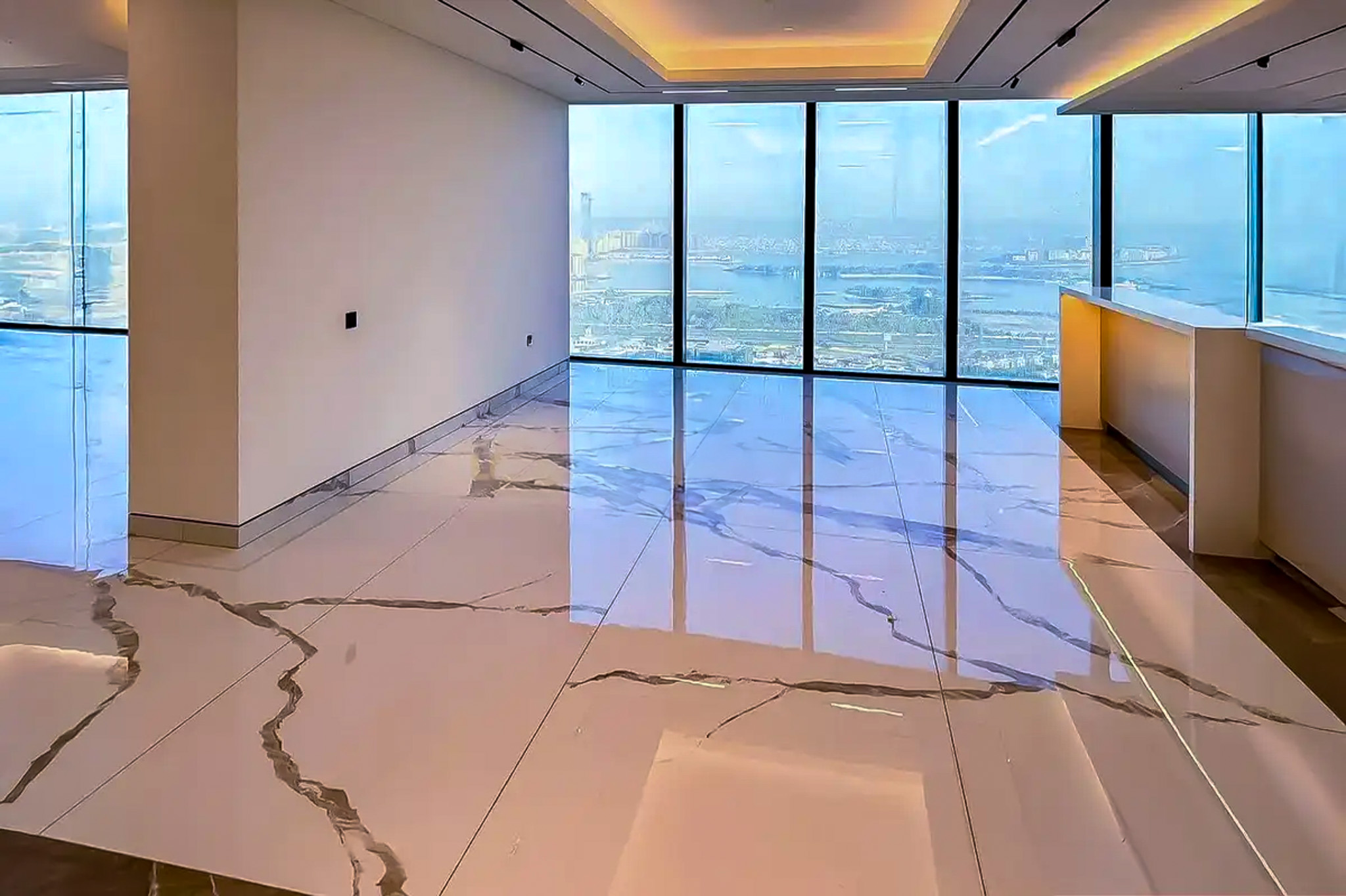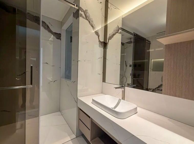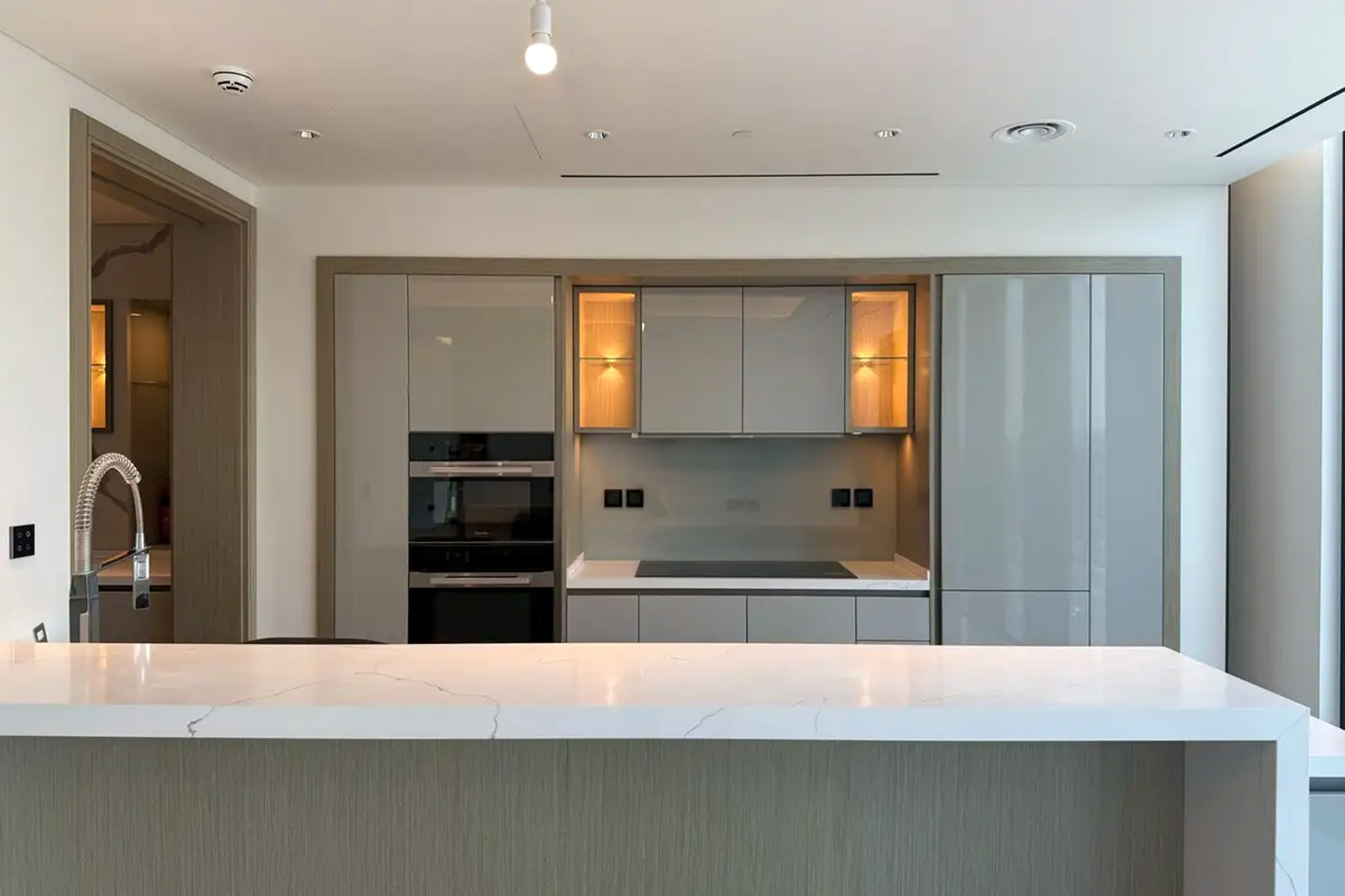 4 Bedroom all Ensuite , huge Master with Walk-in-Closets , all closets finished with premium leather with a Safe Room in the master . The secondary bedrooms all have full Views of the Burj-al-Arab and the palm